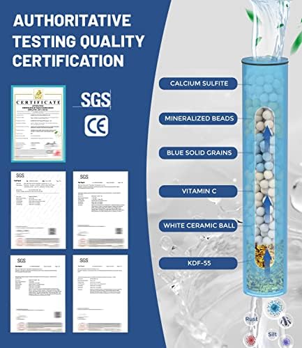 - π΅πππππ πππππππππ πΊπππππ πππ π―πππ ππππ πΊπππππ π―πππ : Upgraded filtered hand held shower head features multi-stages filter system that includes KDF-55, calcium sulfite, blue solid grains, vitamin C, mineralized beads & white ceramic beads. Especially the more premium KDF-55 media, effectively removes chlorine, heavy metals and other harmful substance to protect your whole family health