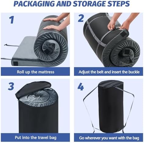 - 【COMFORT IS PRICELESS IN EVERY CAMPING TIME】The super soft and cozy memory foam camping mattress is made of high-density memory foam material, automatically adapts to the shape and weight of the body and provides full protection. So bring about excellent comfort and shock absorption effects. Compared to sleeping bag and camping air mattress, sleeping mattress for camping providing camping lovers with a high-level sleeping experience, allowing your body to fully rest and keep energetic.