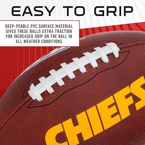 - KANSAS CITY CHIEFS FOOTBALL: This junior youth football is the perfect way for kids to rep their favorite NFL football team while they play out in the backyard, on the beach, at the tailgate or anywhere else!