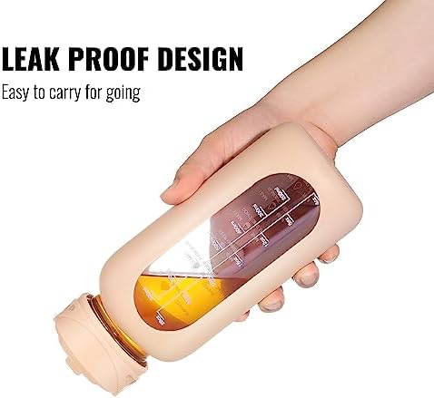 - TRACK HYDRATION AND TIME MARKER DESIGN: The glass water bottle comes with time markers and exact volume on the side, monitor your daily hydrated intake and stay on track meet your health and fitness goals, nudge you getting into healthy habit of drinking water