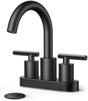 FORIOUS 4 Inch Centerset Bathroom Faucet Black 2 Hole, Two Handle Matte Black Faucet for Bathroom Sink with Metal Dain, 24" Supply Line, and 360° Rotating Spout of 4" Vanity