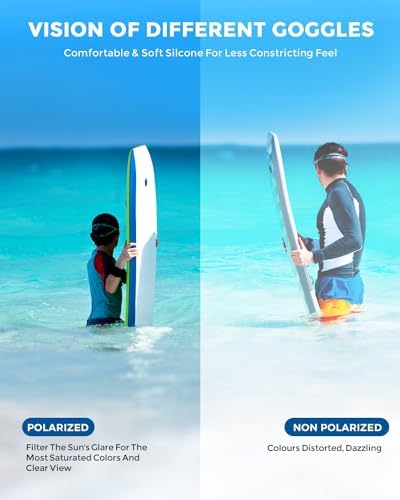 - 【Polarized Kids Swimming Goggles】 The polarized lenses will block 99% of intense glare from the sun or light reflecting off flat surfaces such as lakes and seas, ensuring a better eye protection for outdoor/indoor swimming and other water sports.
