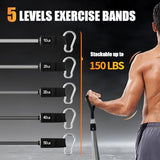 - Adjustable Resistance Bands: WHATAFIT exercise bands come with 5 different resistance level 10lbs, 20lbs, 30lbs, 40lbs and 50lbs in 5 different colors. You can use the bands You can use it independently or in combination, up to 150 lbs