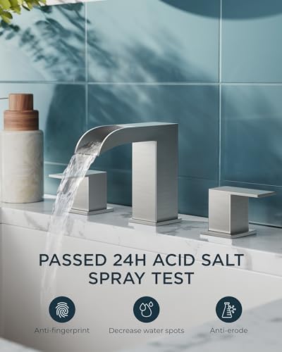 - Stunning Waterfall Spout Design: Upgrade your bathroom with the FORIOUS 8 Inch widespread bathroom faucet, featuring a sleek 1.2" waterfall spout for a smooth, splash-free flow. Perfect for daily use—brushing teeth, washing hands—even in low-pressure homes. Combines luxury with functionality!