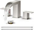 FORIOUS Square Brushed Nickel Bathroom Faucets 3 Hole, Waterfall 8 Inch Widespread Bathroom Sink Faucet with Metal Pop-up Drain and Supply Lines, Two Handles for Vanity, Lavatory, Restroom