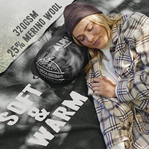 AlphaBeing Waterproof Outdoor Blanket with Merino Wool, Extra Thick Warm, Windproof, Packable Stadium Blankets for Cold Weather, Camping Gift, Pet, Car, Picnic, Concerts, 79" x 59", Black/Gray is backordered and will ship as soon as it is back in stock.