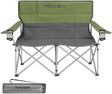 VIVOSUN Double Camping Chair, Fully Padded Folding Loveseat, Portable Oversized Duo Chair with Storage Cup Holders, Height-Adjustable Armrests & Carry Bag, Supports up to 500lbs, Green & Grey