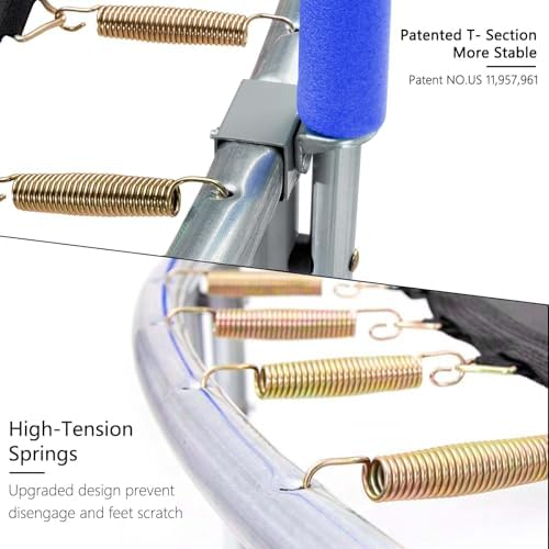- The sturdy galvanized spring safely connects the tightly woven jump pad and frame together to provide a comfortable jumping force and a deep impression of the jump. 5 solid U-shaped feet ensure that there will be no shaking when jumping.