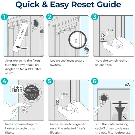 - EASY FILTER RESET AND SUPPORT: After replacing filters, don't forget to reset the filter lifespan. If you encounter any issues during the reset process, our reliable customer support is readily available to assist you, ensuring a seamless experience with your RO100ROPOT system.