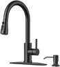 FORIOUS Kitchen Faucet with Soap Dispenser and Pull Down Sprayer, High Arc Single Handle Classic 3 Modes Stainless Steel Faucet for Kitchen Sink Farmhouse RV Bar Laundry Camper, Oil Rubbed Bronze