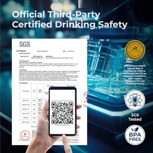 - TESTED AND CERTIFIED SAFETY: This product ROPOT mineral filter is certified by WQA to NSF/ANSI/CAN 372 for lead free compliance when used in RO100ROPOT and RO100ROPOT(UV). Also the filter's mineral balls undergo rigorous testing at SGS labs to ensure top-notch drinking safety.