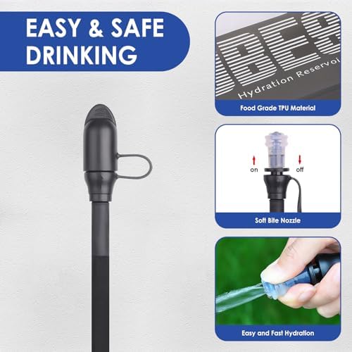 - Safe Drinking: UTOBEST 2L hydration bladder is made of food-grade TPU, safer and more durable than PEVA/EVA. Odorless, tasteless, and BPA-free. The soft bite valve has a protective cap to keep dirt out, ensuring safe drinking