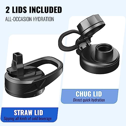 - TWO DIFFERENT LIDS DESIGN: The motivational water bottle is equipped with 2 wide-mouth lids, 1 flip-up straw lid and 1 easy-twist spout lid, All caps allow for easy one-handed or hands-free sipping when you are busy or on-the-go