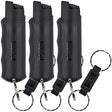 - FASTER, EASIER, & MORE ACCURATE AIM: Finger grip enhances your aim & helps keep your eye on the threat. The QuickRelease pepper spray keychain provides instant access & is secure to carry on keys, bags, & purses. Twist Lock safety helps stop accidental discharge.