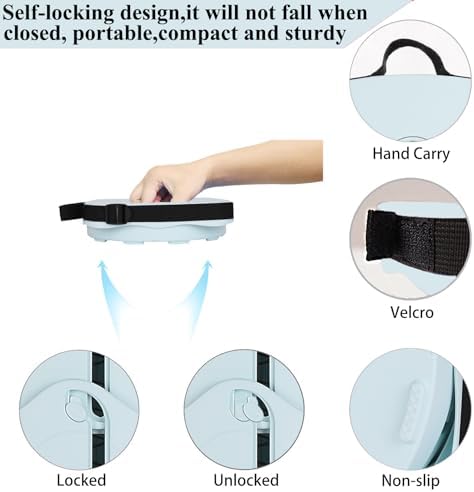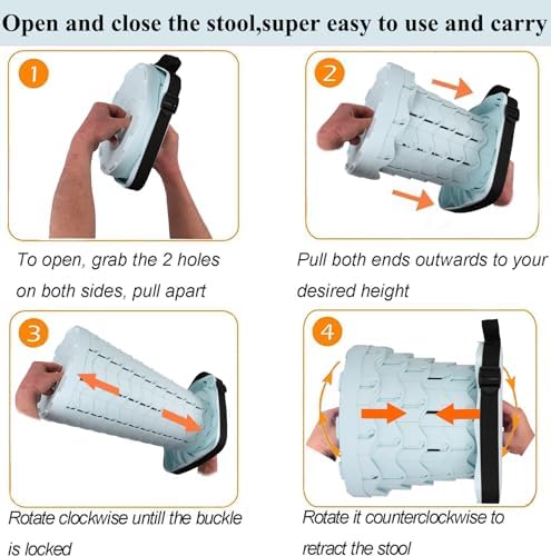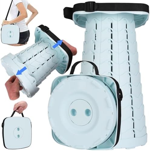 - [Portable,Lightweight]:Diameter and height in the closed state are 10" and 2.4" of this retractable stool, weight is 2.54 lbs. You can carry it in your hand or hanging on your shoulder with the adjustable two straps without any burden.The retractable stool is portable, lightweight, small and convenient to place into luggage.