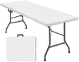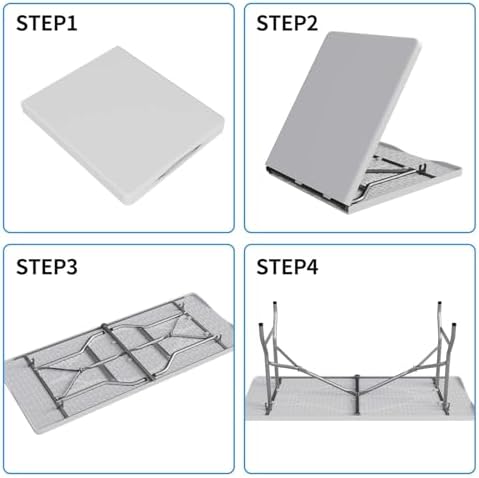 - FOLDABLE DESIGN: The 6-feet folding table folds with built-in carrying handles for easy portability and transport between locations. Once folded, the table can be easily stored in a closet, garage or car trunk for future use. You can take it wherever you need it, from the living room to the campsite to the workplace.