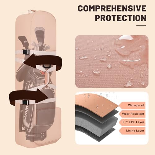 - [UPGRADED WHEELS] This Travel Golf Bag has two smooth rolling wheels and a thick padded top, making it effortless to move around on the course or in the airport. A practical choice for golfers who value portability.