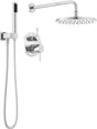 - COMPLETE SHOWER SYSTEM: The Modern Raincan shower system includes a raincan shower head, shower arm, integrated diverter shower trim, wall-mount handheld shower, wall elbow and all required valves for installation
