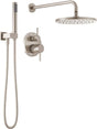 - COMPLETE SHOWER SYSTEM: The Modern Raincan shower system includes a raincan shower head, shower arm, integrated diverter shower trim, wall-mount handheld shower, wall elbow and all required valves for installation