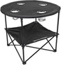 Wakeman Camping Table - 2-Tier Folding Table with 4 Cupholders and Carry Bag for Picnic, Tailgate, Beach, or Camp - Camping Gear Outdoors (Black)