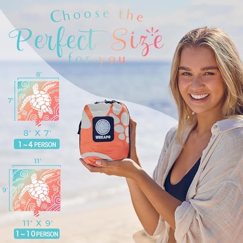 WEKAPO Beach Blanket Waterproof Sandproof Oversized Extra Large Sand Free Beach Mat with Stakes, Storage Bag - Essentials for Outdoor Beach, Picnic (Sea Turtle, 8 X 7 FT (1~4 Person)) is backordered and will ship as soon as it is back in stock.