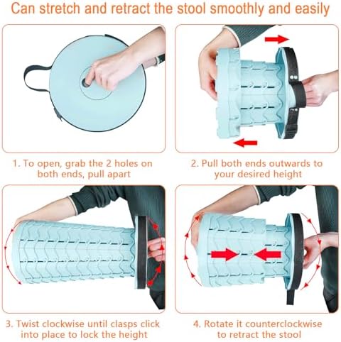 - PORTABLE & LIGHTWEIGHT: This telescopic stool is only 2.54 pounds with dimeter 9.84 inches/250mm. The adjustable strap makes the stool easy to carry in your hand or hanging on your shoulder. Perfect to use for camping, fishing, hiking, hunting, picnic, BBQ. Also can be used in living room, bedroom, bathroom etc