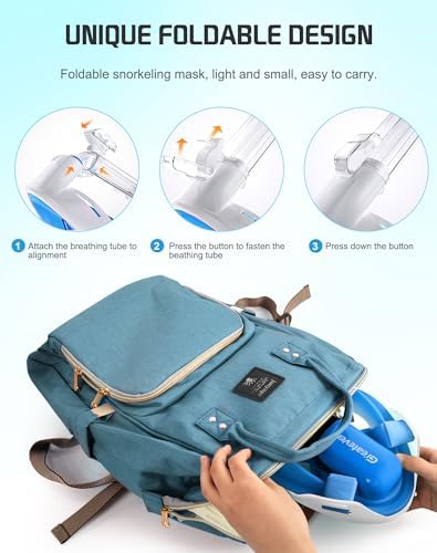 • Premium Enhanced Functions: This snorkel mask set is equipped with a removable camera mount that allows you to install your camera and record your wonderful underwater snorkels adventures, while using a unique foldable design that is easy to carry and space-saving, making it the perfect choice for beach vacation!