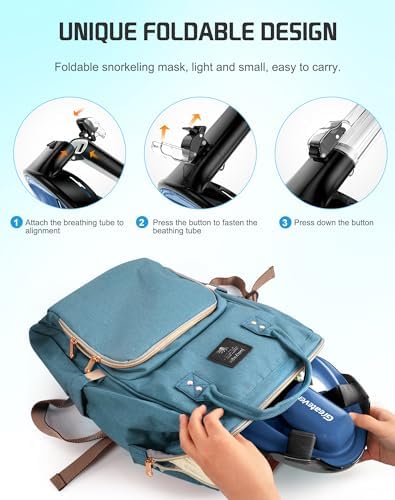 - Premium Enhanced Functions: This snorkel mask set is equipped with a removable camera mount that allows you to install your camera and record your wonderful underwater snorkels adventures, while using a unique foldable design that is easy to carry and space-saving, making it the perfect choice for beach vacation!