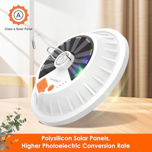 - 【Ultra Bright & 12 Hours Run Time 】The solar camping light contains 120 piece LED bulbs of 4000LM, which can light up for 12 hours when fully charged. It takes about 12 hours to fully charge by USB charging. With wireless remote control, convenient to adjust 5 lighting levels, no need to trough the main light