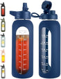 - TRACK HYDRATION AND TIME MARKER DESIGN: The glass water bottle comes with time markers and exact volume on the side, monitor your daily hydrated intake and stay on track meet your health and fitness goals, nudge you getting into healthy habit of drinking water