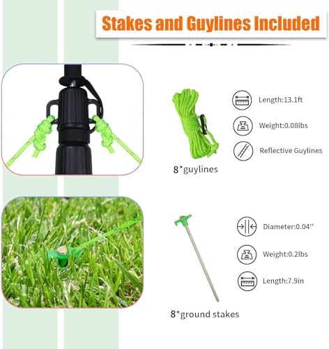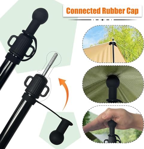 - TEAR AND SLIP-RESISTANT: Rubber caps on the top of the poles reduce sliding and can be used directly to support the tarps. The rubber caps are securely attached to the tarp poles and won't get lost. Additionally, the tips of the poles are equipped with anti-slip threads for enhanced wind protection.