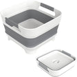 2.4 Gal Collapsbile Wash Basin with Drian Plug,9L Dish Pan for Soaking Baby Bottles,Portable Sink, Multiuse Foldable Bucket,Ice Beverage Tubs for Camping, Vegetable Washing, RV (Gray)