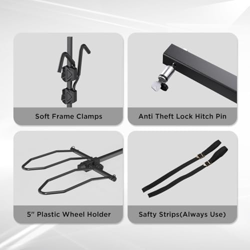 - š²ćLockable Padded Soft Clamps ćThis hitch bike rack provides more safety and stability without scratching your bicycle paint surface. And the locking system ensures that your bicycle will not detach from the hook due to bumps while driving.
