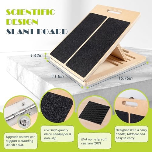 - [Scientific Design Wooden Slant Board] Our calf stretcher slant board has a foldable design. A full PVC sandpaper top and a non-slip EVA base provide a better grip to prevent slipping during exercise and use.