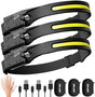 - 【Motion Sensing & 5 Light Modes】 Head lamps have 5 working modes, including COB high mode, COB low mode, XPE high mode, XPE low mode, and strobe mode to meet all scenarios. The head lamp has sensitive intelligent sensor, so that you can press the sensor mode button and turn the head flashlight on or off with a wave of your hand.