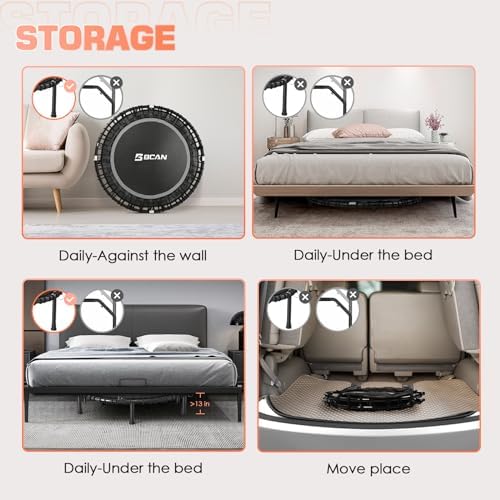 - Fairly Easy to Assemble: BCAN fitness trampoline comes with 60% pre-assembled, Only 10 minutes to complete the assembly with our special tool