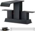 FORIOUS Square Waterfall Matte Black Bathroom Faucets 3 or 2 Hole for 4 Inch Centerset Sink with Metal Pop Up Drain and Hose, Double Handle Operation, Suitable for Vanity RV Restroom Remodel