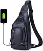 BULLCAPTAIN Genuine Leather Sling Bag with USB Charging Port Multi-pocket Chest Bag for Men Hiking Travel Daypack XB-129