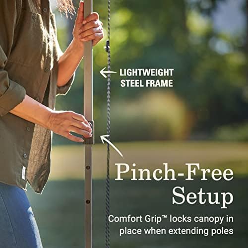 - Pinch-free setup & takedown: Comfort Grip features easy-to-use buttons for locking the poles in place