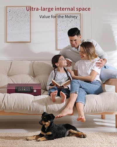 Gun Safe,Biometric Gun Safe for Pistols 3-Ways unlock Fingerprint Digital PIN Key Unlock with Voice,Lock box for Cloakroom living room Bedroom Nightstand and Car BILLCONCH - Burgundy Red