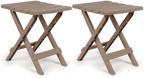 Camco Adirondack Portable Outdoor Camping Small Weatherproof Rustproof Durable Plastic Folding Side Table for Indoor and Outdoor Use, 2 Pack, Taupe