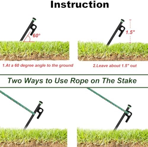 - 【Value Tent Stake Kit】Package come with 24pcs of 12in metal tent stakes(Diameter 1/4", weight 2.7oz), 24pcs fluorescent rubber rings, 1pc storage pouch.