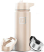 IRON °FLASK Camping & Hiking Hydration Flask with 3 Lids - Stainless Steel, Double Walled & Vacuum Insulated Water Bottle - Leak Proof & BPA Free (Sand, Straw - 18 oz)