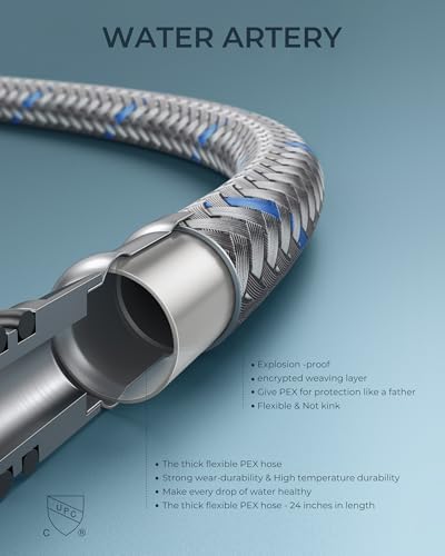 - HIGH-PERFORMANCE HOSE: 3x burst pressure-tested&cUPC certified InnoFlex PEX hoses, explosion-proof and high-temperature resistant, safe for drinking water. Forious bathroom faucet with 3/8 US-standard pipe threads&leak-proof built-in ring prevents leaks