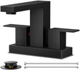 FORIOUS 4 Inch Centerset Bathroom Faucet Black 3 Hole or 2 Hole, Square Matte Black Bathroom Sink Faucet Centerset 4" with Metal Pop Up Drain, 24" CUPC Hose and Spare Water Saving Aerator