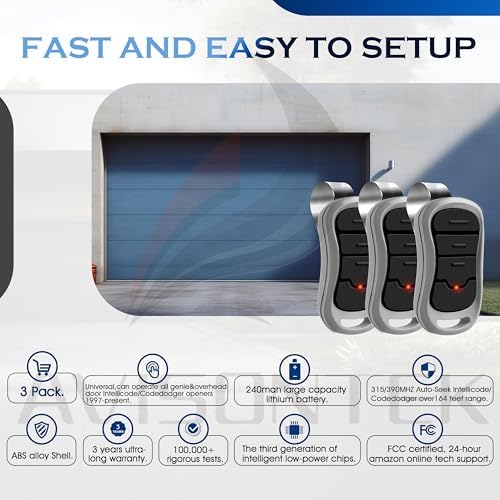 - **Wide Compatibility**:ONLY Compatible with 1997 to Current Intellicode Genie Garage Door Opener. Note: NOT Support Dip Switch Remote.Replacement for G3T-BX G3T-R G3T-A G1T-BX G1T-A O1T-BX O1T-A GITR-3 GIT-1 GIT-2 GIT-3 O3T-BX OCDTR-3 OCDT-1 OCDT-2 OCDT-3.