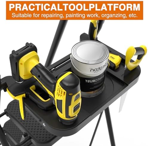 - 【Extended Handrail & Tool Platform】This 5 steps ladder is designed with handrails on both sides and features soft sponge padding. Also comes with a practical tool platform for gloves, wrenches, paint buckets, light bulbs and other tools and equipment