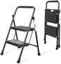2 Step Ladder, Portable Steel Folding Step Stool with Wide Anti-Slip Pedal & Convenient Handgrip, 500lbs Sturdy Steel Ladder, Black
