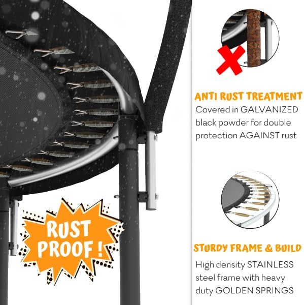 - Kids just wanna have fun - for a long time! We want your Jumpzylla super trampoline to look good as new for as long as possible! The frame is galvanized inside-out and the legs are powder coated for extra protection against rust, the thick foam is waterproof, so your new trampoline has a longer product life. And because we want to go the extra mile, we added the luxury plastic covered ladder for easy access and a comfortable use of your in kids trampoline for toddlers and older kids.