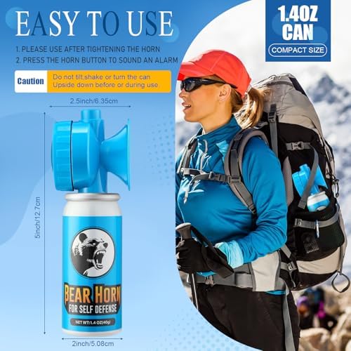 1.4oz Bear Horn Self Defense 123dB Loud Air Horn Audible up to 1/2 Mile Safety Air Horn for Wild Animals Bear Alarm for Hiking Climbing Camping and Outdoor Protection